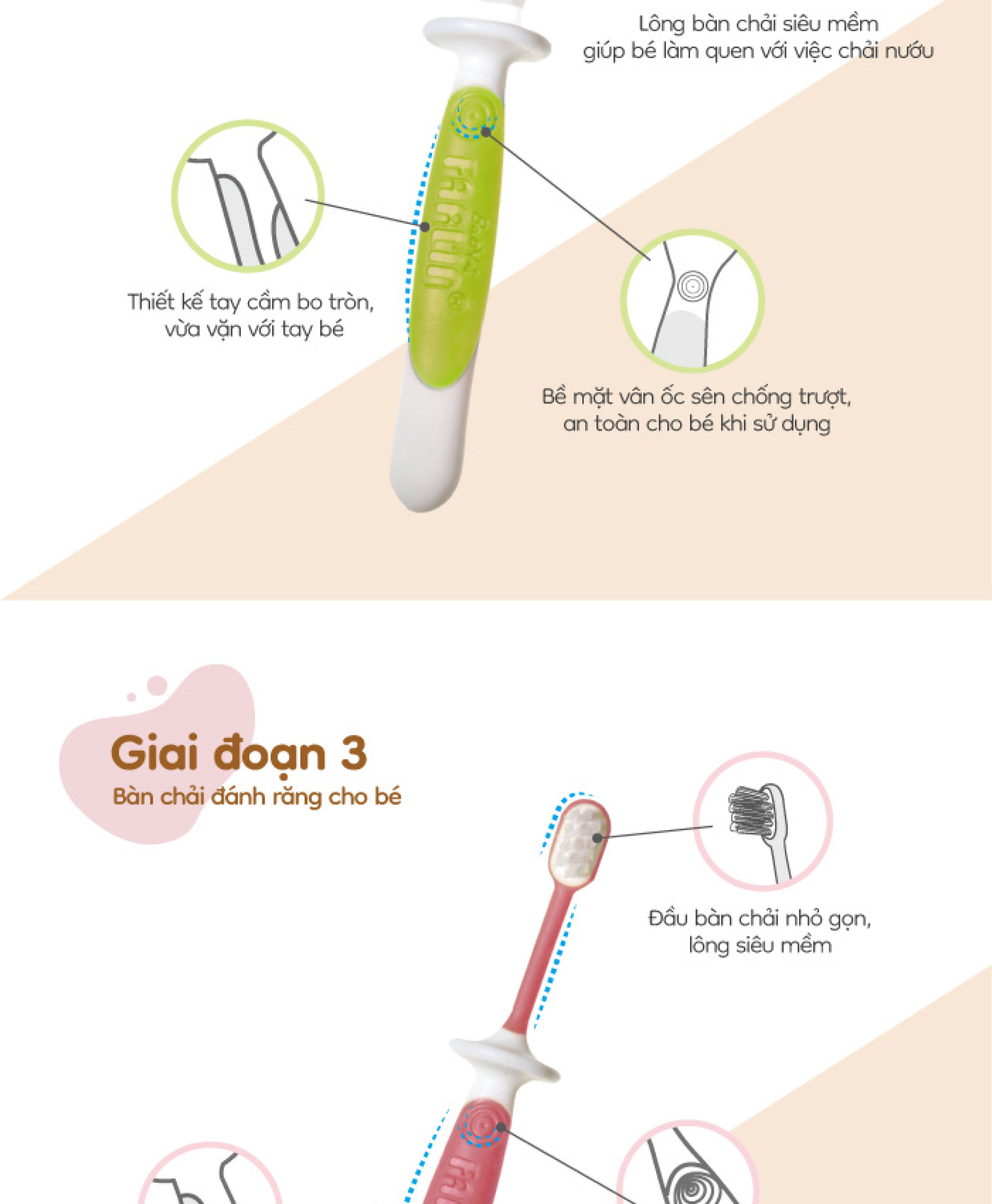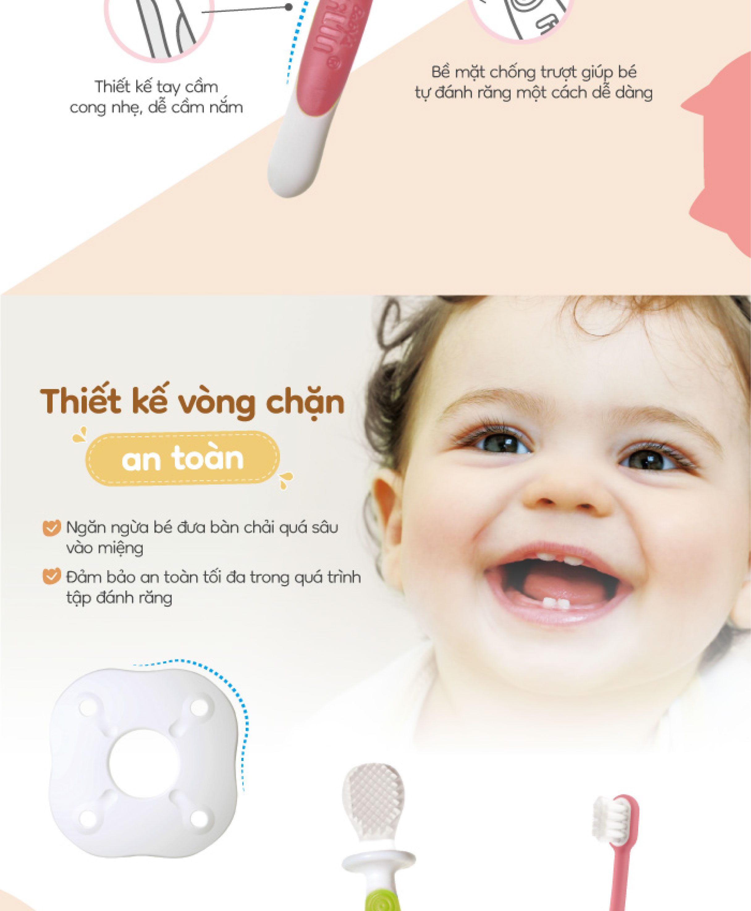 - Bàn chải giai đoạn 2 dùng để tập đánh răng và làm sạch nướu cho bé.