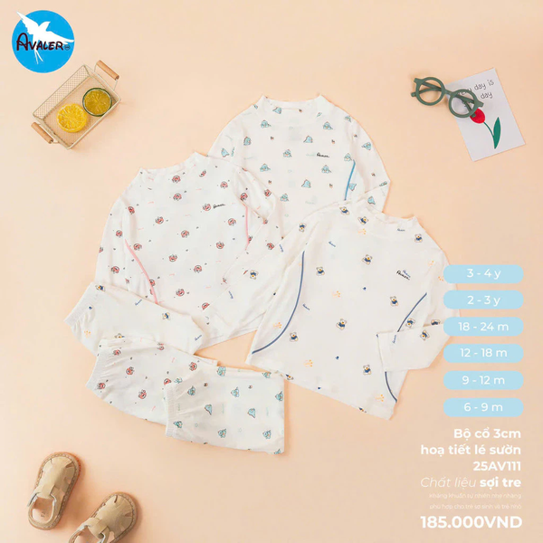 Bộ cổ 3cm họa tiết lé sườn Avaler 25AV111