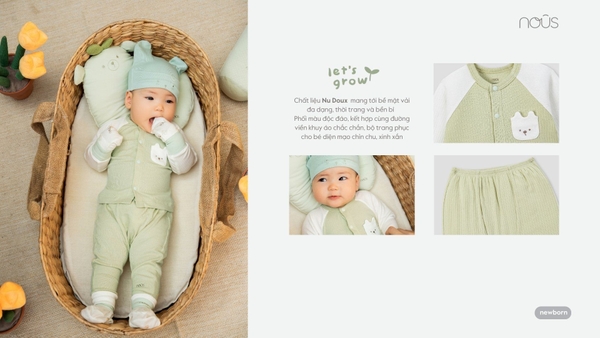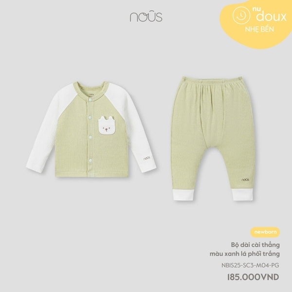 Bộ dài cài thẳng màu xanh lá phối trắng NewBorn NOUS