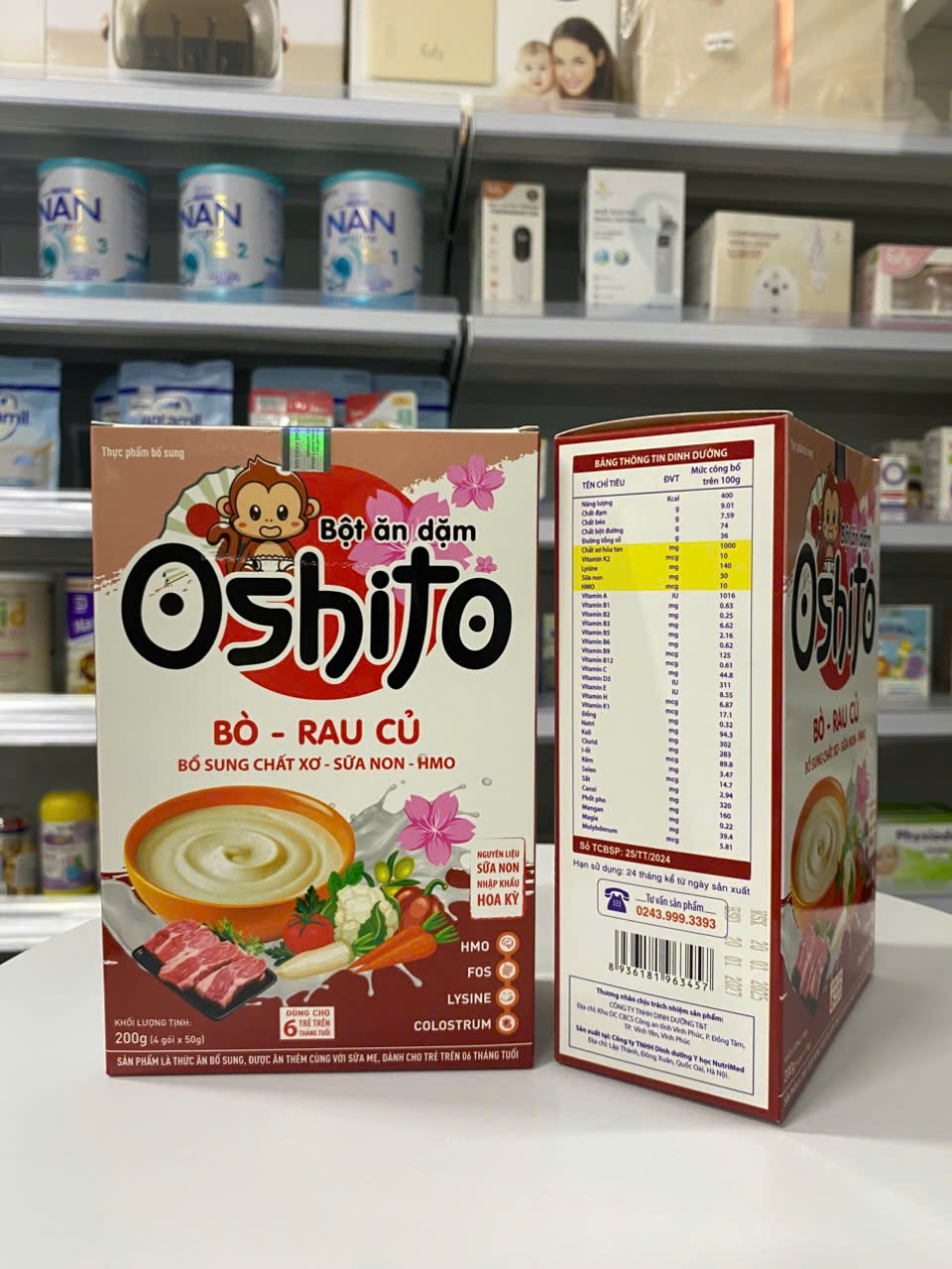 Bột ăn dặm Oshito bò rau củ 4x50g dành cho bé trên 6 tháng tuổi trở lên