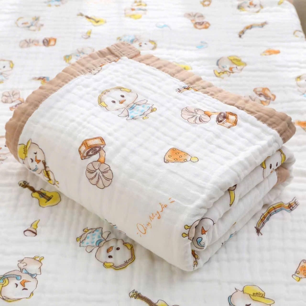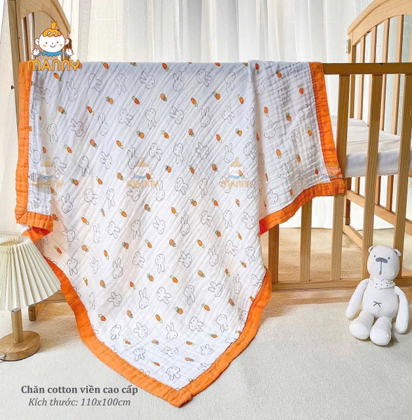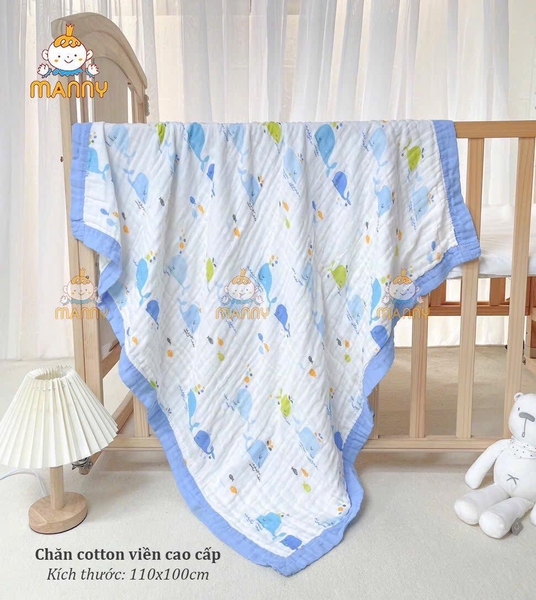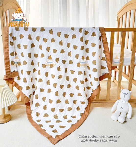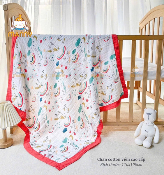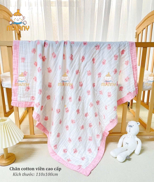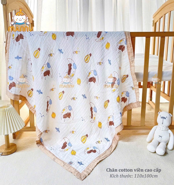 Chăn Bo Viền 4 lớp Muslin bo viền cotton MANNY 110x100cm (họa tiết ngẫu nhiên)