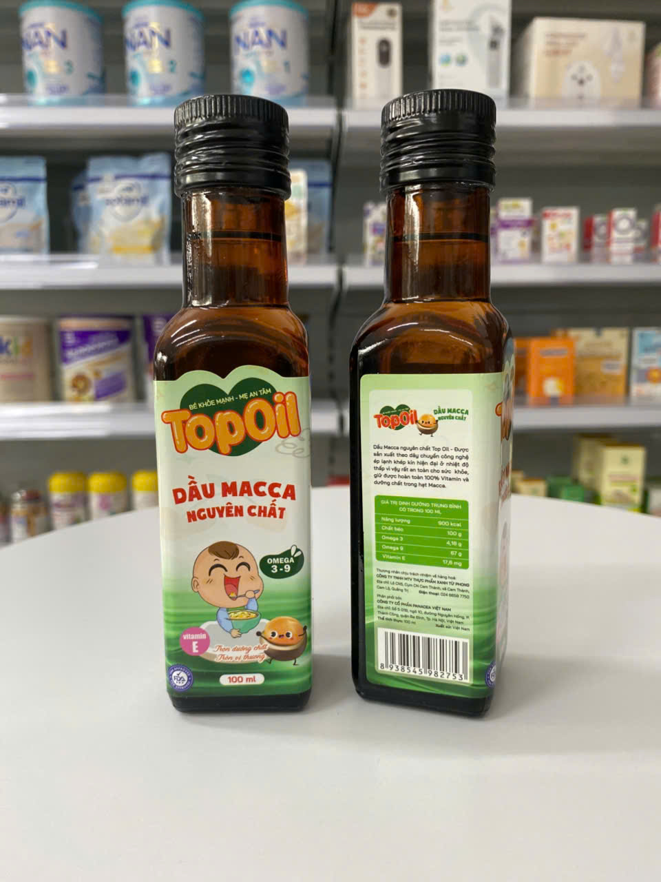 - Dầu macca nguyên chất Toppoil 100ml tốt cho não và hệ thần kinh nhờ nhóm vi chất có lợi và omega 3