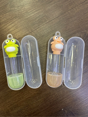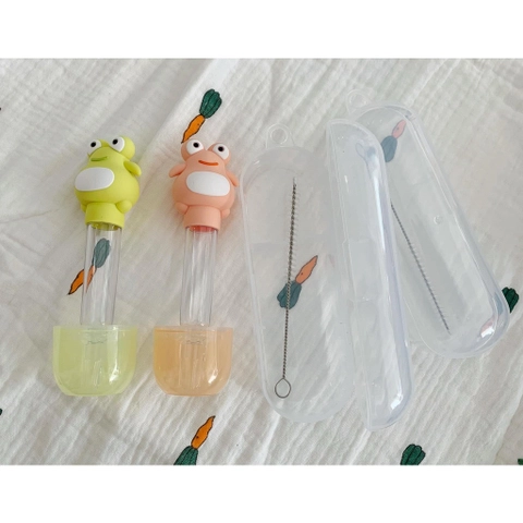 Dụng cụ bón cho bé uống thuốc hình ếch chống sặc, có đầu silicon mềm mại, tặng kèm hộp đựng và cọ ống