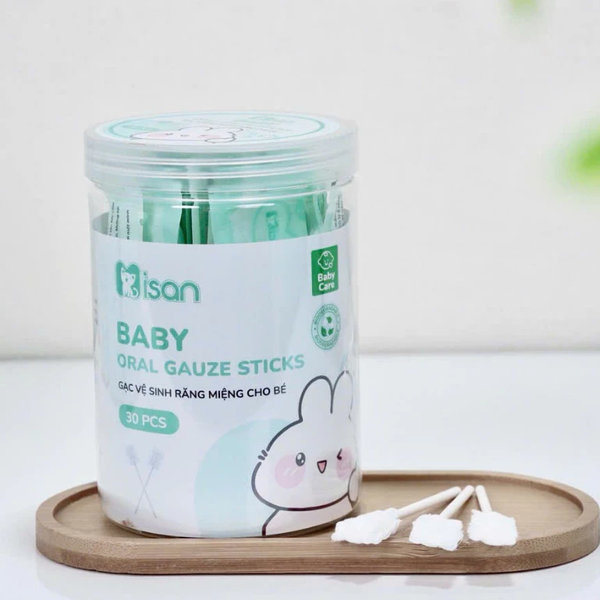 Gạc Rơ Lưỡi Que Misan Hộp 30 Que Tưa Lưỡi Tiệt Trùng Răng Miệng Cho Bé Sơ Sinh