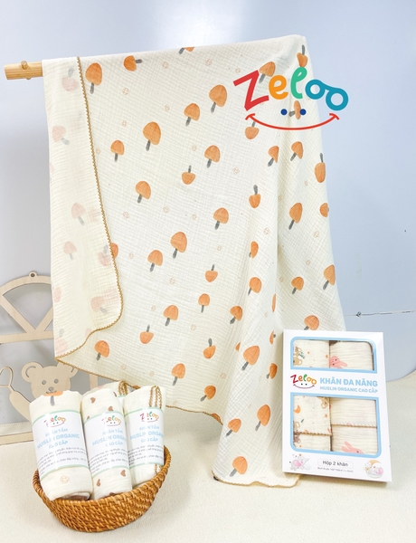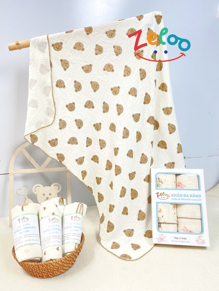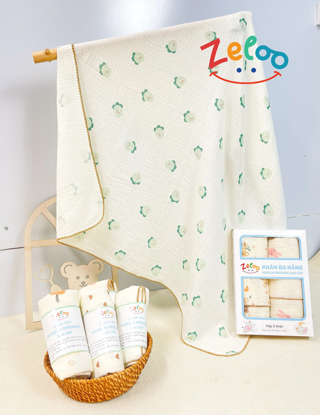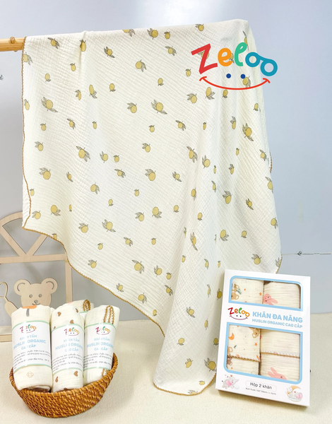 Hộp 2 Khăn đa năng Zeloo Muslin Organic (90x90cm)