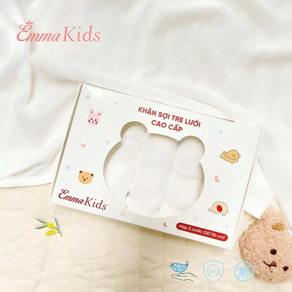 Hộp 5 Khăn sợi tre lưới Emmakids (30x30cm) (họa tiết ngẫu nhiên)
