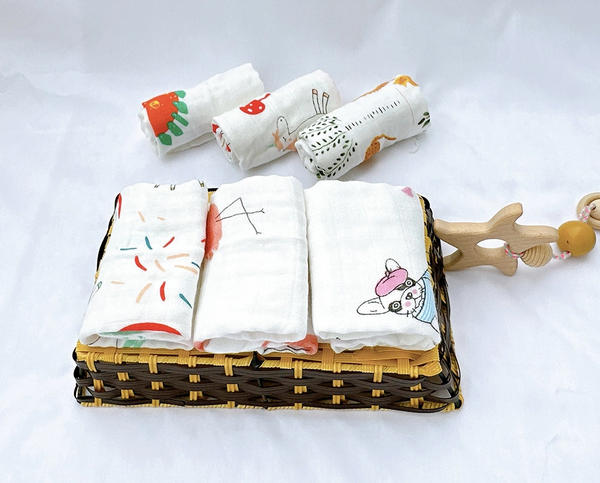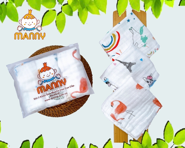 Set 3 Khăn Sữa Manny Sợi Tre Muslin 30x30cm (họa tiết ngẫu nhiên)