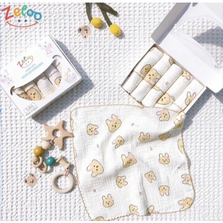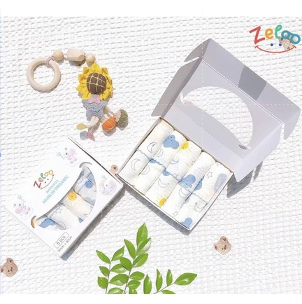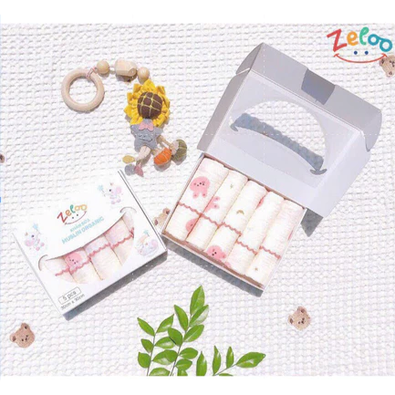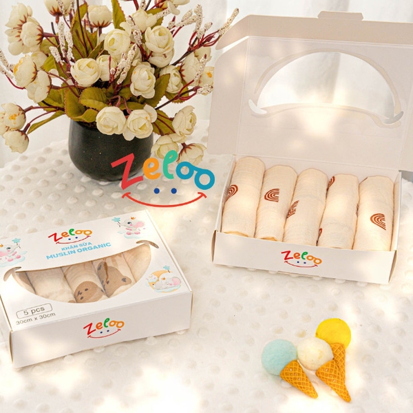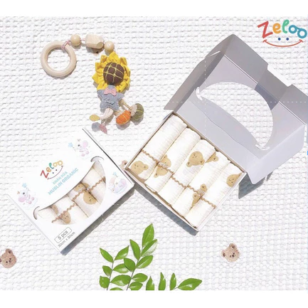 Set 5 Khăn Sữa Zeloo Muslin Organic 30x30cm (họa tiết ngẫu nhiên)