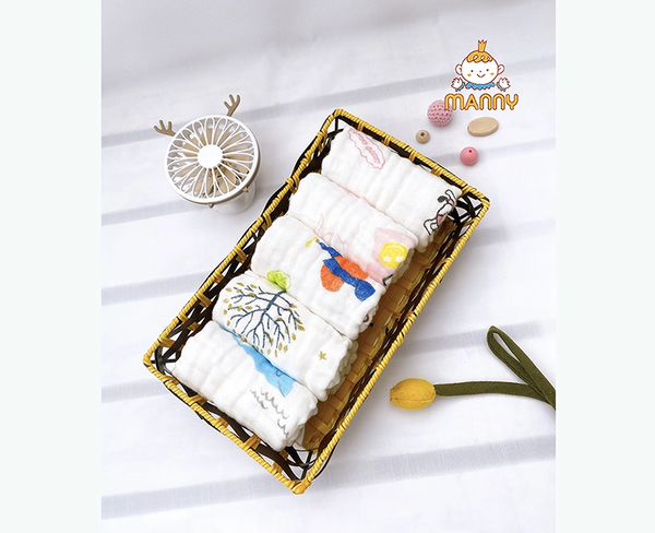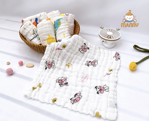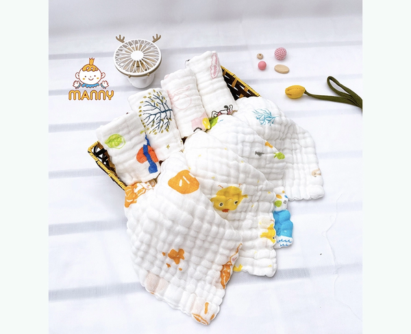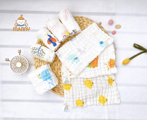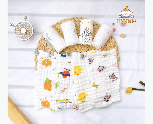 Set 5 Khăn xô họa tiết Manny 6 lớp Organic cao cấp 30x30cm (họa tiết ngẫu nhiên)