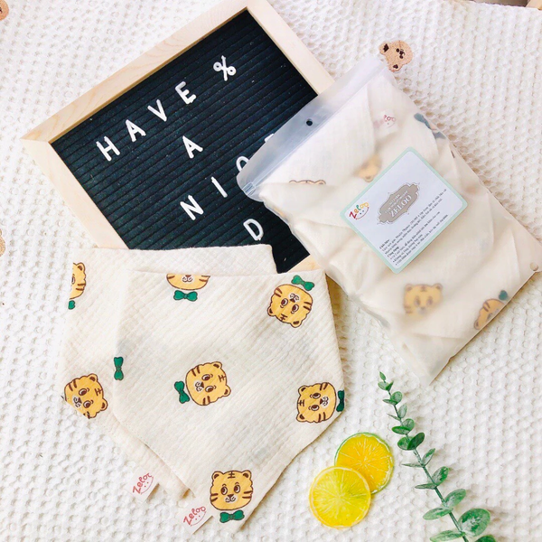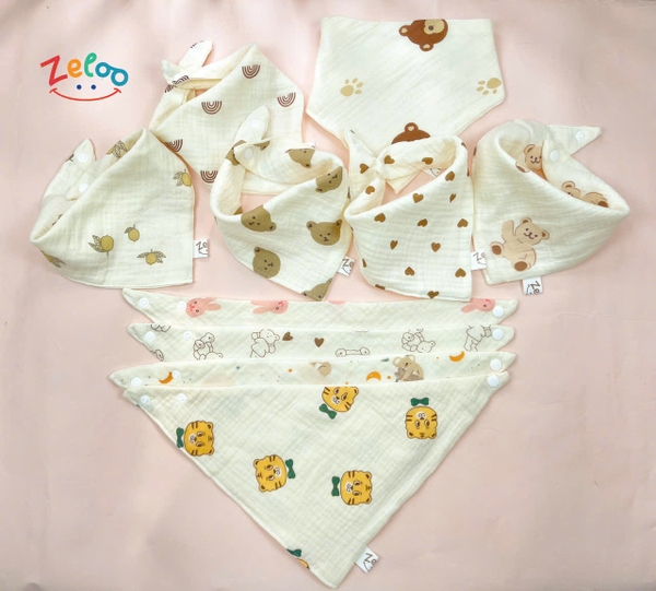 Set 5 yếm 4 lớp Muslin Organic Zeloo (họa tiết ngẫu nhiên)