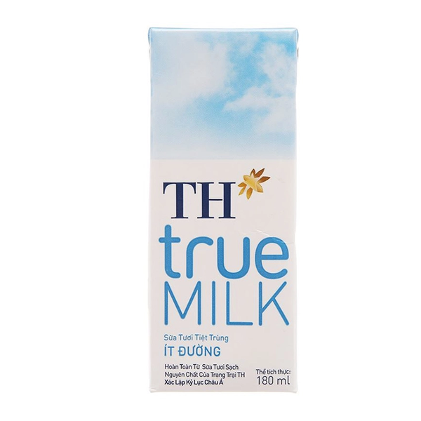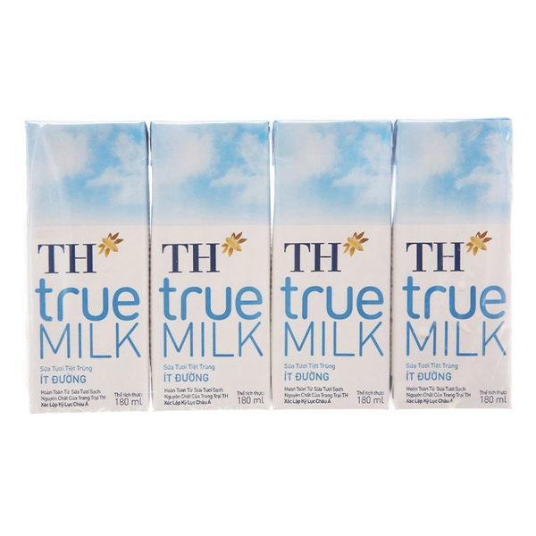 Sữa tươi tiệt trùng TH True Milk ít đường 180ml cho bé trên 2 tuổi (vỉ 4 hộp)