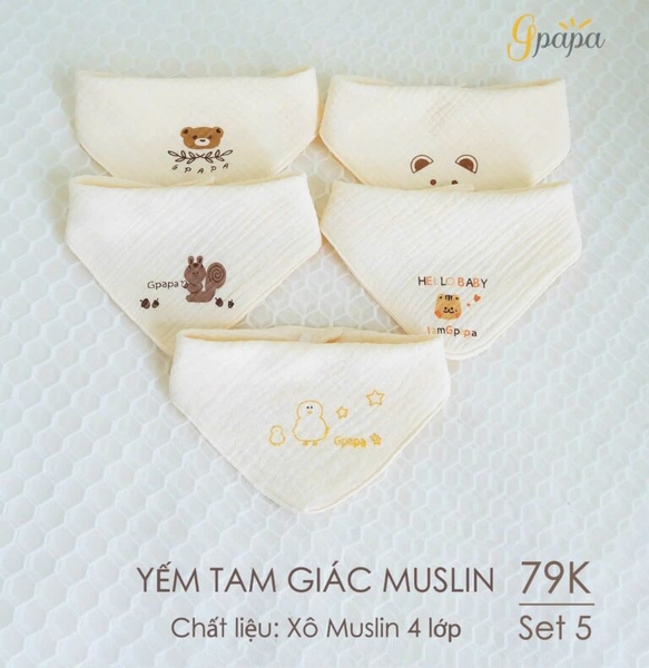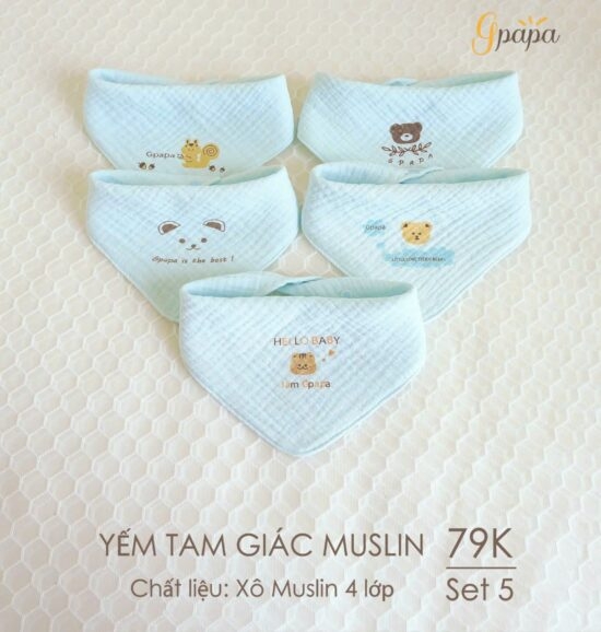 Yếm Tam Giác Muslin Goodmama màu ngẫu nhiên (Set 5 chiếc)